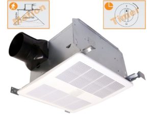 KAZE APPLIANCE SE90TM ultra quiet 90-cfm 0.3-sones dual speed bathroom exhaust fan with motion sensor and delay off timer. Model No: SE90TM. Dual speed motion sensing exhaust fan designed